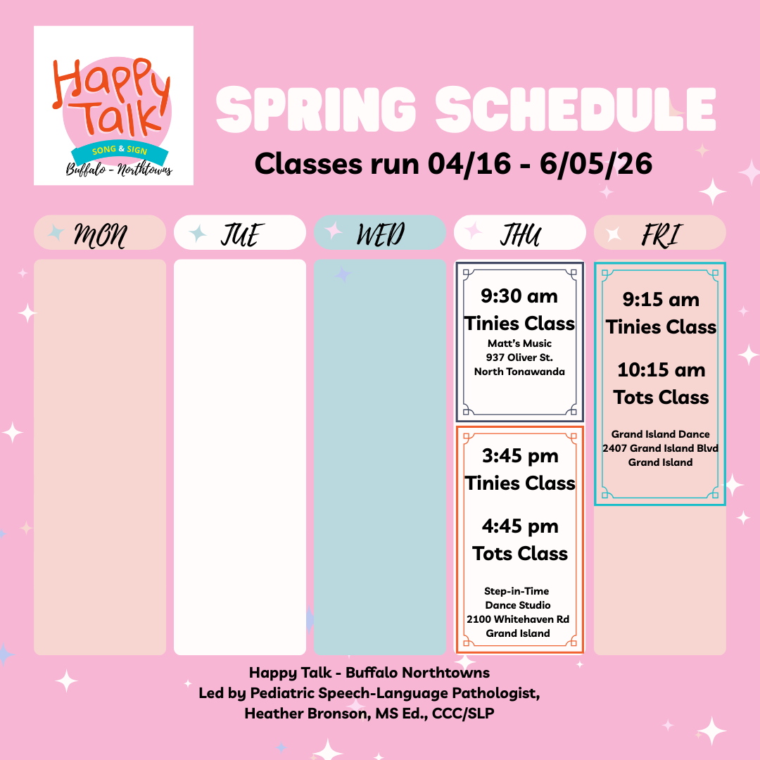 Have a class or group request for your area? Send an email to happytalk.buffnorth@gmail.com